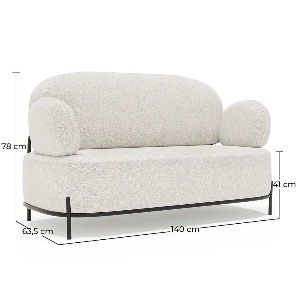 The Munum sofa, upholstered in bouclé fabric and with armrests, combines style, comfort, and functionality in one piece. With its soft and elegant upholstery, as well as well-designed armrests, this sofa invites you to sit back and relax in a cozy and modern space. It is a design gem that will bring style and comfort to your living room. With its compact size and sleek lines, this sofa is perfect for creating an ideal atmosphere in any space.