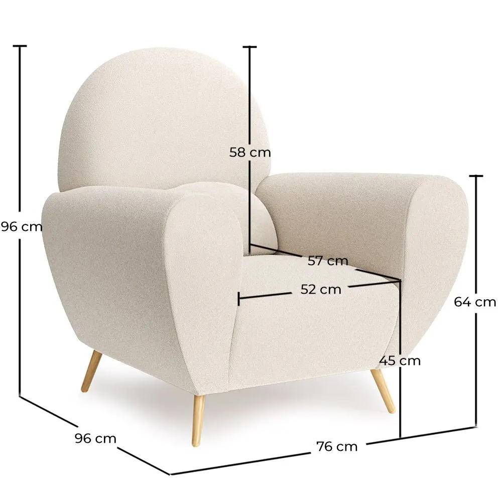 We love this white teddy fleece armchair with light wooden legs and sculpted armrests. The structure is traditional with a modern touch which makes the armchair adapt to any interior. The backrest comes with a removable lumbar pillow. Enjoy its comfort and style!
