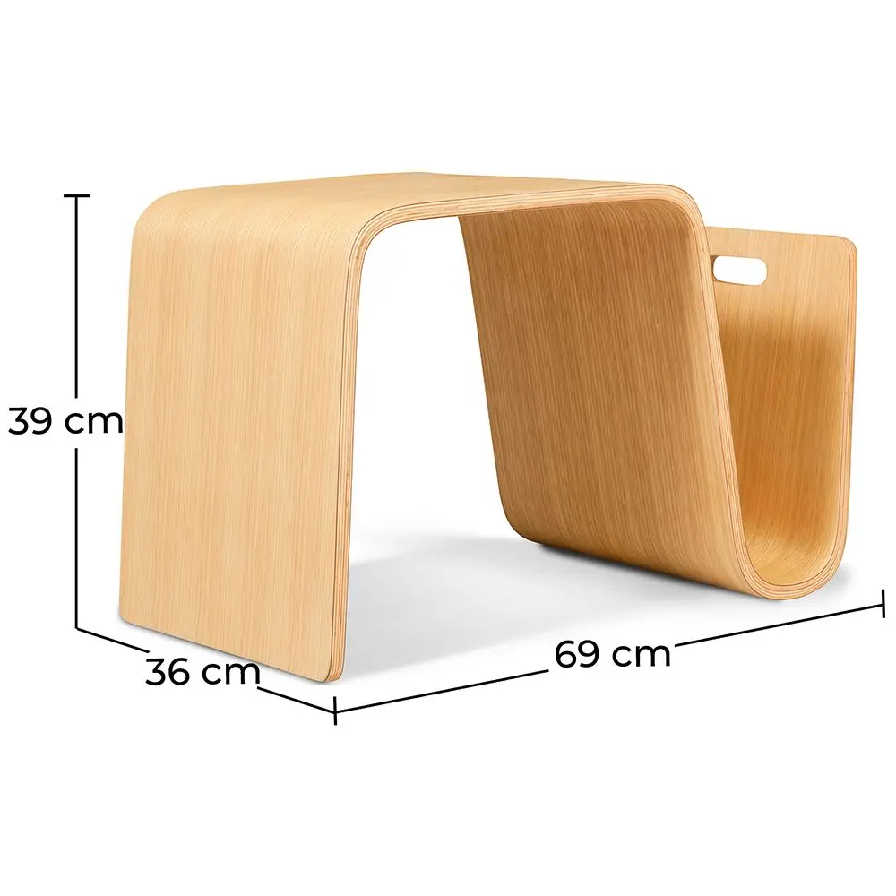 The Aurora magazine rack is entirely made of wood and it is a multifunctional product that can be used to store newspapers or magazines, as a chair, or as a laptop support, for occasional work or for home study. All you need to do is pivot the leg and the magazine rack can be placed the way you want it. In this way, you can adapt it to a variety of different uses.