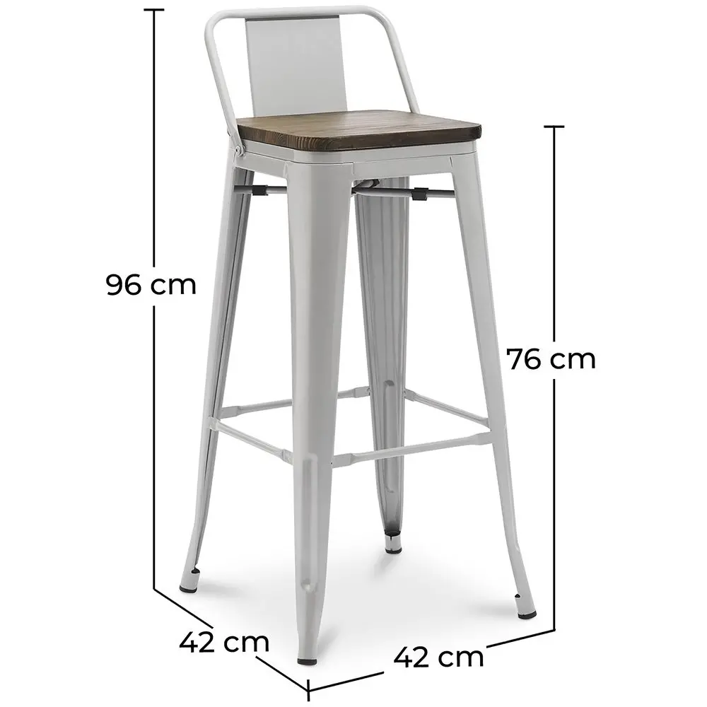 Enjoy comfort and style in your kitchen or bar with the Metalix 76 cm stool featuring a backrest and dark wood seat. Its sturdy industrial design combines a durable steel frame with a dark wood seat that adds warmth and elegance, perfect for modern and sophisticated interiors.