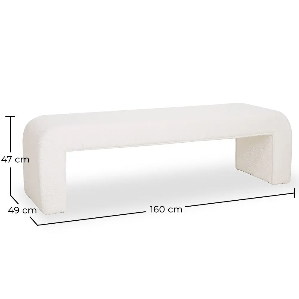 This bench upholstered in white bouclé fabric is the perfect piece for those looking for a modern, elegant, and minimalist piece of furniture. Its versatile design allows it to be placed in the living room, bedroom, hallway, or dressing room, adding style and comfort to any space. The soft texture of the bouclé makes it a cozy and sophisticated seat, ideal to complement contemporary décor. Perfect to add an exclusive and functional touch to your home.