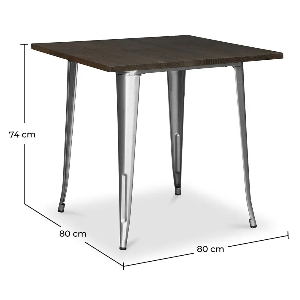 Perfect for small spaces, this Bistrot Metalix Style table has a square top of 80 x 80 cm. It is made of an iron structure painted with powder paint and a solid wood board.