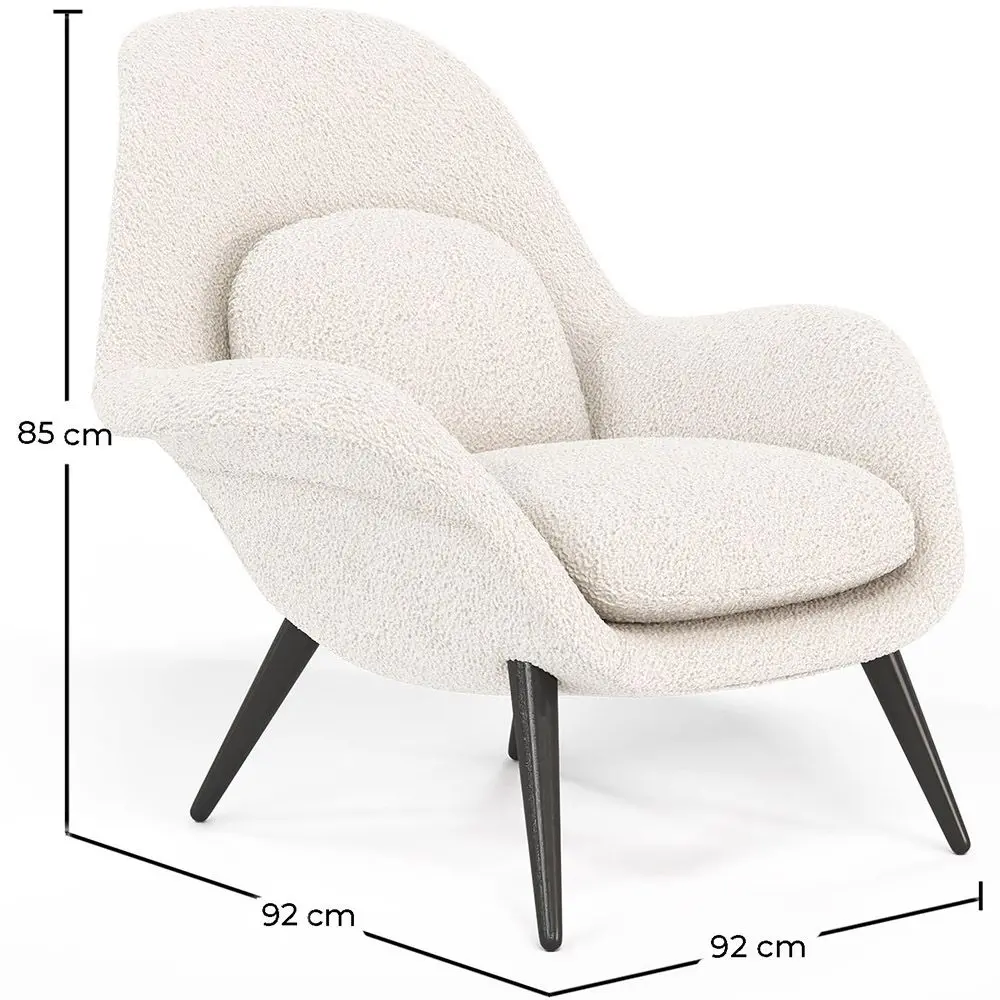 This bouclé-upholstered armchair is a high-quality and stylish option for any home, hotel, restaurant, or office. With its elegant and comfortable design, this armchair will become your guests' favorite place to sit and relax. Additionally, its curled and bouclé texture gives it a unique and sophisticated look that will add personality to your decor. Our Opera armchair is made with high-quality materials, ensuring its durability and resistance to the effects of daily use. Its sturdy and stable structure will provide you with a firm and comfortable seat, while the high-density foam filling will offer you an enveloping and relaxing sitting experience. Its neutral tone easily combines with other colors and shades, allowing you to create different combinations and environments according to your preferences.