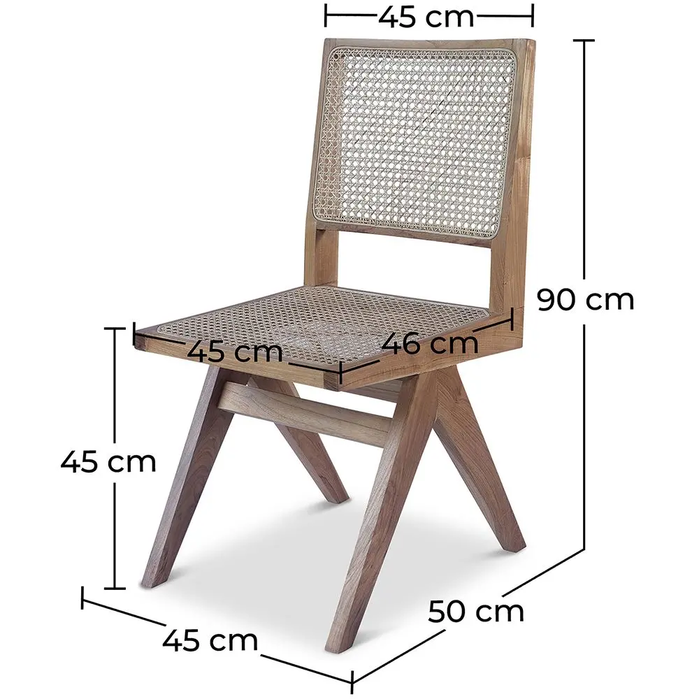 Settle into your living room or dining room with this teak and rattan chair. We love the rattan canework on the seat and back and the simple teak wood frame. This durable wood chair is a perfect companion for all the moments spent indoors or in the garden. Bring bohemian vibes and natural materials into your home.