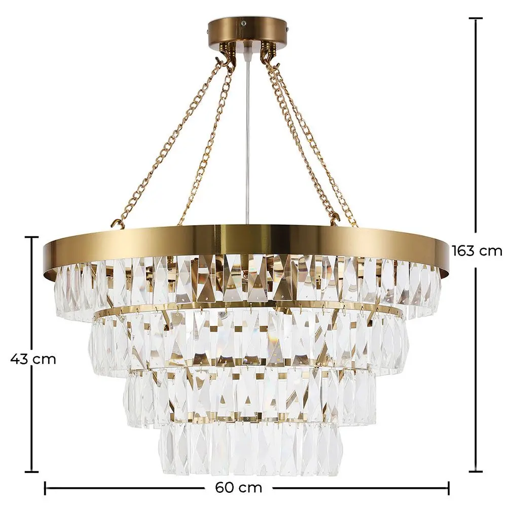 Ania is a classic and beautiful chandelier model. This hanging lamp structure will bring light to any interior during the day, and night. This vintage model is a metal structure in golden tones, with crystal decor and four bulbs that distribute light to all corners of the room. A wonderful fit for a hotel lobby, a vintage restaurant or your living room.