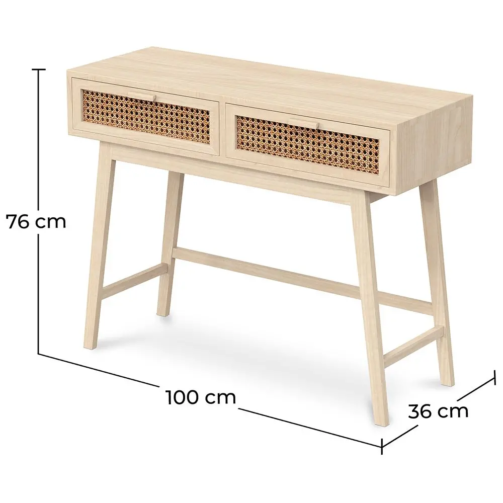 Our 2-drawer cannage hall cabinet is a wooden console table with an original and unique boho style. Ideal for decorating the home or commercial spaces, this piece of furniture is perfect for storing keys, a purse or any other small object. The design of the grid in the drawers makes this furniture also a very attractive piece of decoration and the premium quality of the materials used guarantees a long durability of the product.