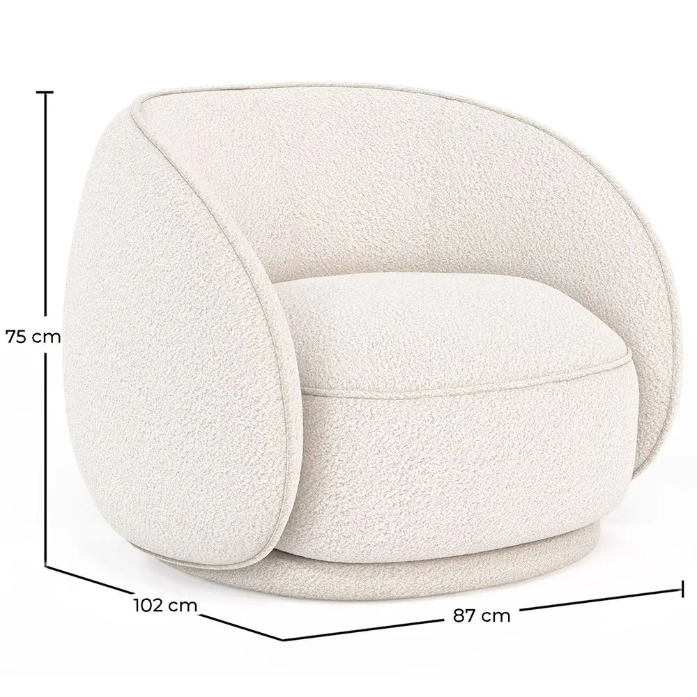 The William armchair upholstered in bouclé fabric is a high-quality and highly comfortable piece of furniture. Its elegant and luxurious design has been inspired by armchairs found in luxury hotels and business spaces. The bouclé fabric upholstery, imitating sheep's wool, gives a supreme quality touch to this armchair. Comfortable, modern and elegant, our William design armchair is a must-have for lovers of designer furniture.