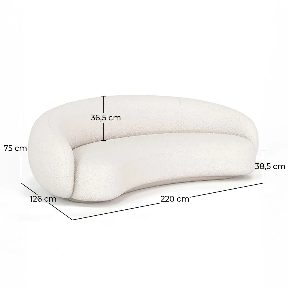 The curved sofa upholstered in bouclé fabric Nathan is a unique and exclusive piece with a modern, elegant, and comfortable design. It is made with top-quality materials to offer the best user experience. The wool-like upholstery provides comfort, luxury, and comfort. It is ideal for hotels, restaurants, offices, or even for home use. It is also available in velvet to adapt to all spaces. You won't be able to resist the charm of this sofa!
