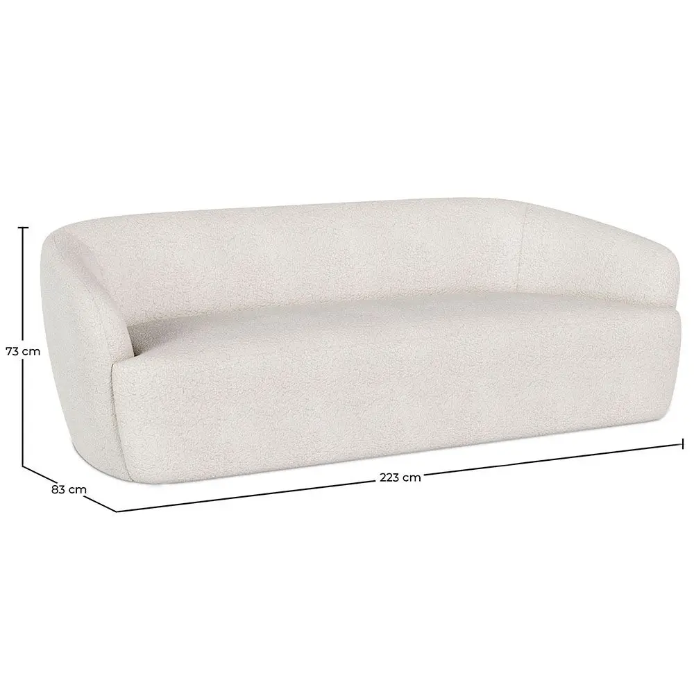 The Bold trend is in full swing and this curved sofa is an example of it. Our sofa upholstered in boucle fabric is one of our best sellers thanks to its modern design and the warmth of its off-white upholstery. Elegant and luxurious, it's perfect for hotels, restaurants, and waiting rooms. The Curva teddy coating fabric sofa is also available in a 2-seater version.
