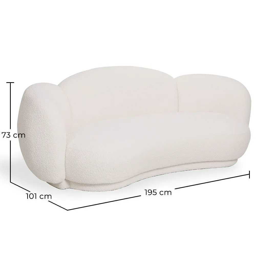 This curved design sofa, upholstered in white bouclé fabric, combines contemporary elegance with absolute comfort. Its organic shape and enveloping padding make it the perfect piece for modern living rooms, minimalist spaces, or luxury interiors. Thanks to its soft texture and neutral tone, this sofa brings brightness, Scandinavian style, and timeless warmth to any environment. Ideal for those seeking a modern, versatile, and sophisticated sofa that stands out as the centerpiece of the décor.