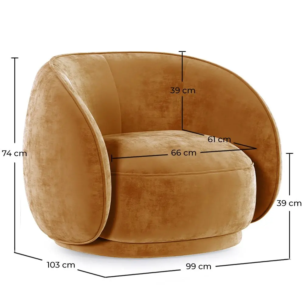 This curved design velvet upholstered armchair is a comfortable and elegant piece, perfect for hotels, restaurants, and commercial areas. It is upholstered in a high-quality, soft-to-the-touch fabric, with a modern and sophisticated design. It is a very comfortable armchair with a luxurious look that will bring elegance to any space, and its solid wood structure provides durability and stability to withstand the test of time while keeping it as new.