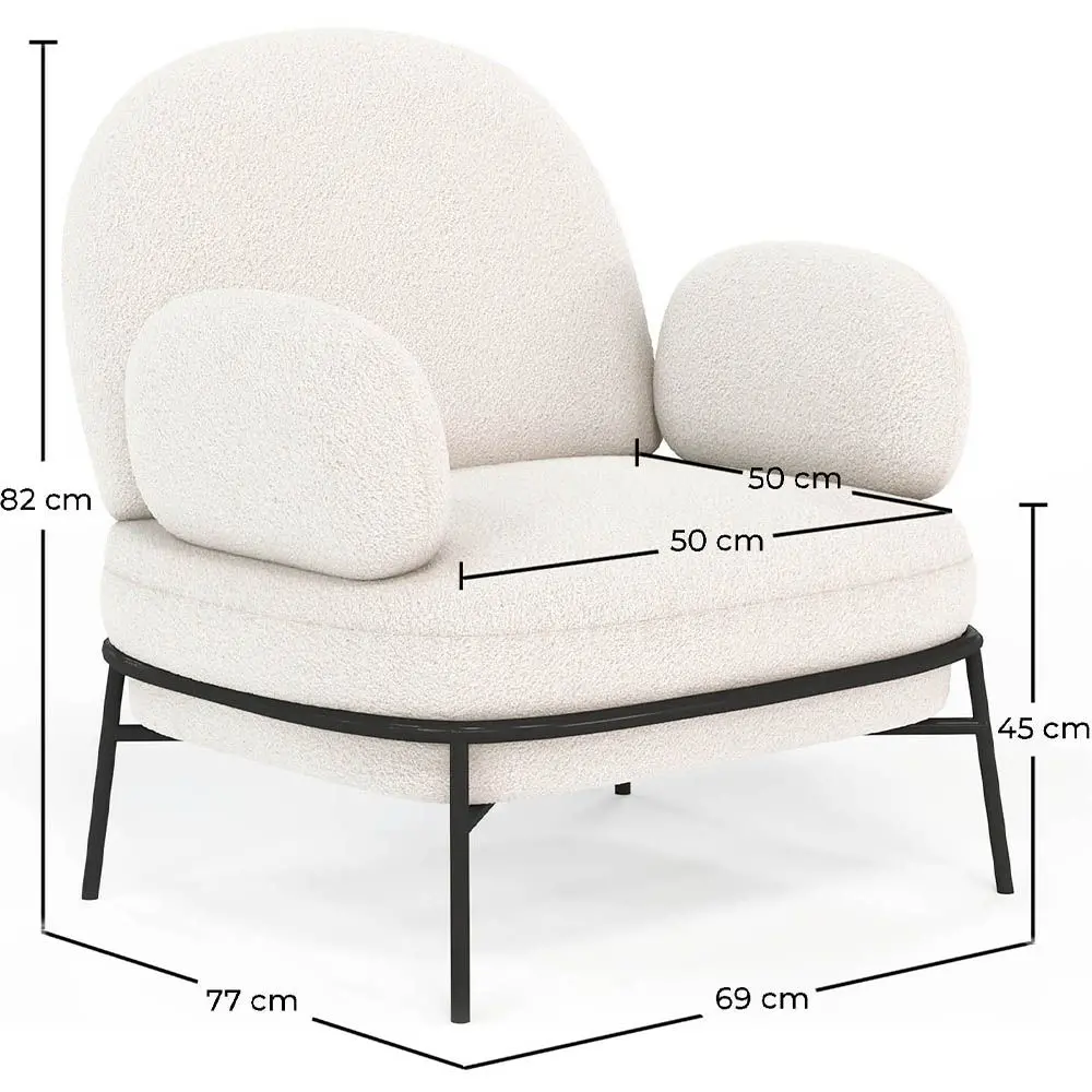 The Hedar armchair upholstered in white bouclé fabric with a solid black metal frame is the very definition of elegance and comfort. With its simple and spacious design, this armchair is perfect for luxury hotels, high-end meeting rooms, or even for the home. Its white bouclé fabric upholstery gives it a sophisticated and timeless appearance, while the black metal frame adds a contemporary and sturdy touch. Undoubtedly, this armchair is a must-have for interior design enthusiasts