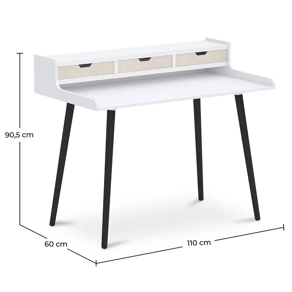 This innovative home office desk has a white top with rounded edges, presenting a reliable and long-lasting coating for any activity. The wooden desk table is ideal to be placed in a children’s room or used as a computer table to store those essential technological devices. With three small compartments that will give sufficient room for stationery storage requirements, this Scandinavian desk possesses a stylish design with ergonomic support built-in. The wooden legs are steadfast and sturdy and provide sufficient strength for whatever purpose it is used for. This design desk will enhance most rooms in your home and give an impression that is both traditional and modern.