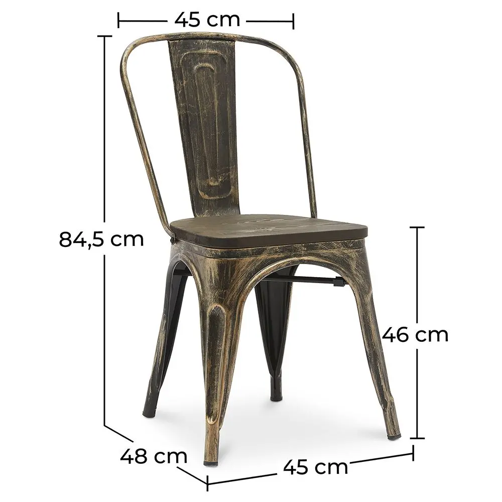 An iconic dining chair made out of steel and wood. This industrial-style Bistrot Metalix model has a dark wooden seat and weighs 4.7 kilos. It can create a bistro-chic atmosphere, both indoors and outdoors. A great choice for cafes, bars, restaurants, homes or any other industrial style interiors.