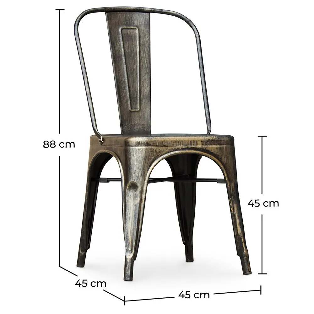 A perfect choice if you are looking for a functional, simple, durable, comfortable, and easy to move around chair, with style. This is a modern industrial style chair. It fits modern bistros, restaurants, gardens. A classic.