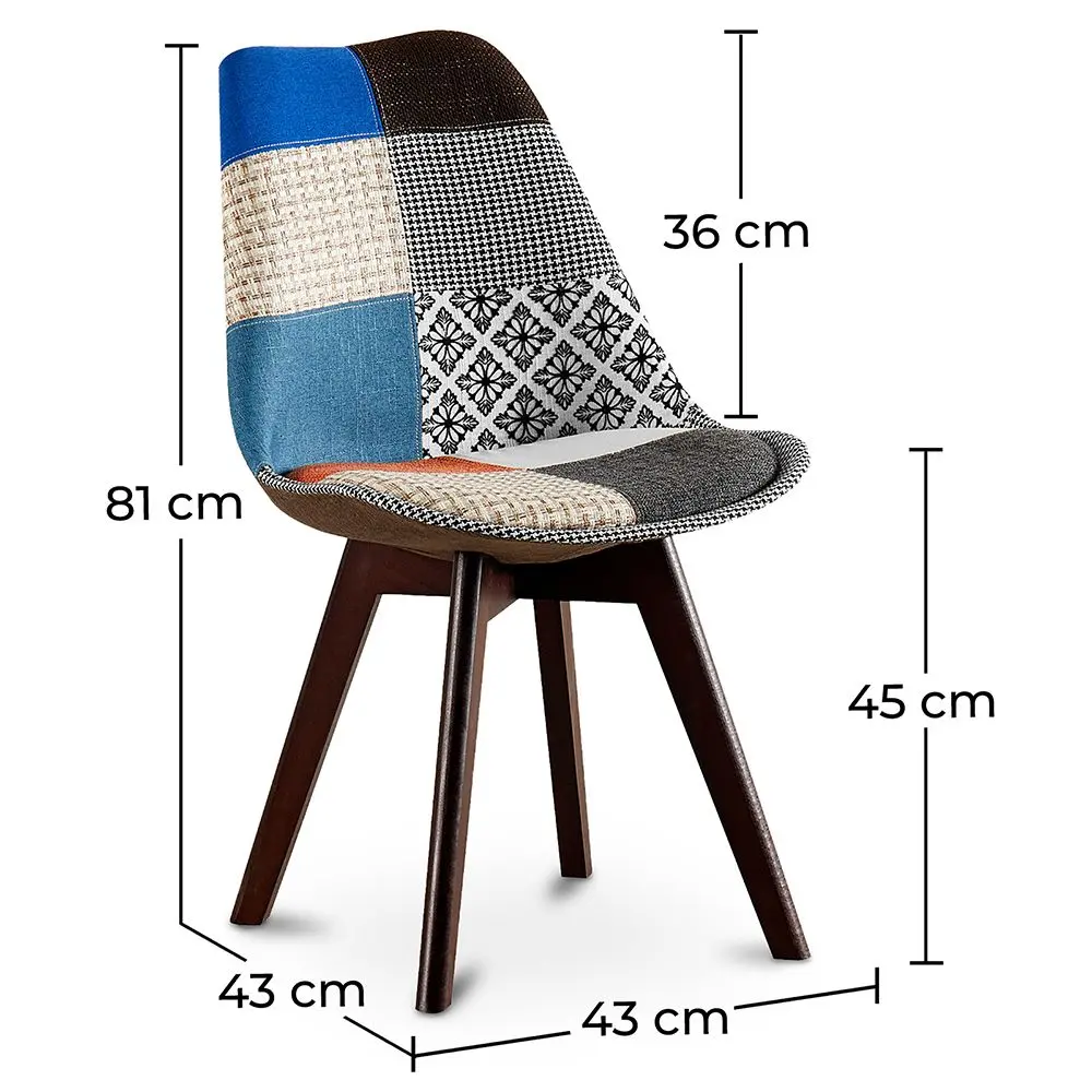 Make yourself comfortable in this Brielle design multicolor patchwork chair. Its legs made of dark wood and metal give it a classy look and the Piti patchwork model brings freshness. Retro scandinavian design chair is a colorful fit for your dining room as well as for hotels and restaurants. This chair model is part of the new premium edition. What do you say?