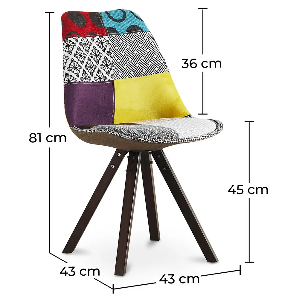 Make yourself comfortable in this Brielle design multicolor patchwork chair. Its legs made of dark wood and metal give it an elegant look and the Jay patchwork model refreshes interior with its trendy colors. Retro scandinavian design chair makes it a colorful fit for your home dining room as well as for hotels and restaurants. This chair model is part of the new premium edition.