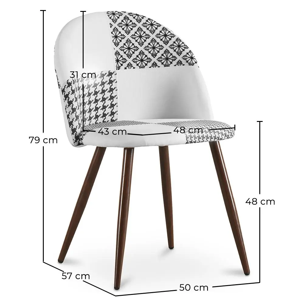 Enjoy the colors and comfort of this fabric dining chair. It has a patchwork pattern and uses design concepts from Scandinavian-inspired styles. This type of chair is actually suitable for a set of dining room furniture or can be added to a hotel or restaurant's collection for more luxury and something that looks contemporary but stylish.