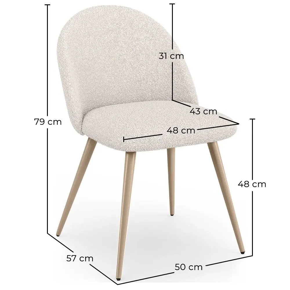 Add style to your meals with Bennett, a Scandinavian design dining chair. Boucle fabric and rounded backrest make this chair a seat to wish for. It is perfect to have your guests feel welcome or to add luxury and comfort to a hotel or a restaurant.