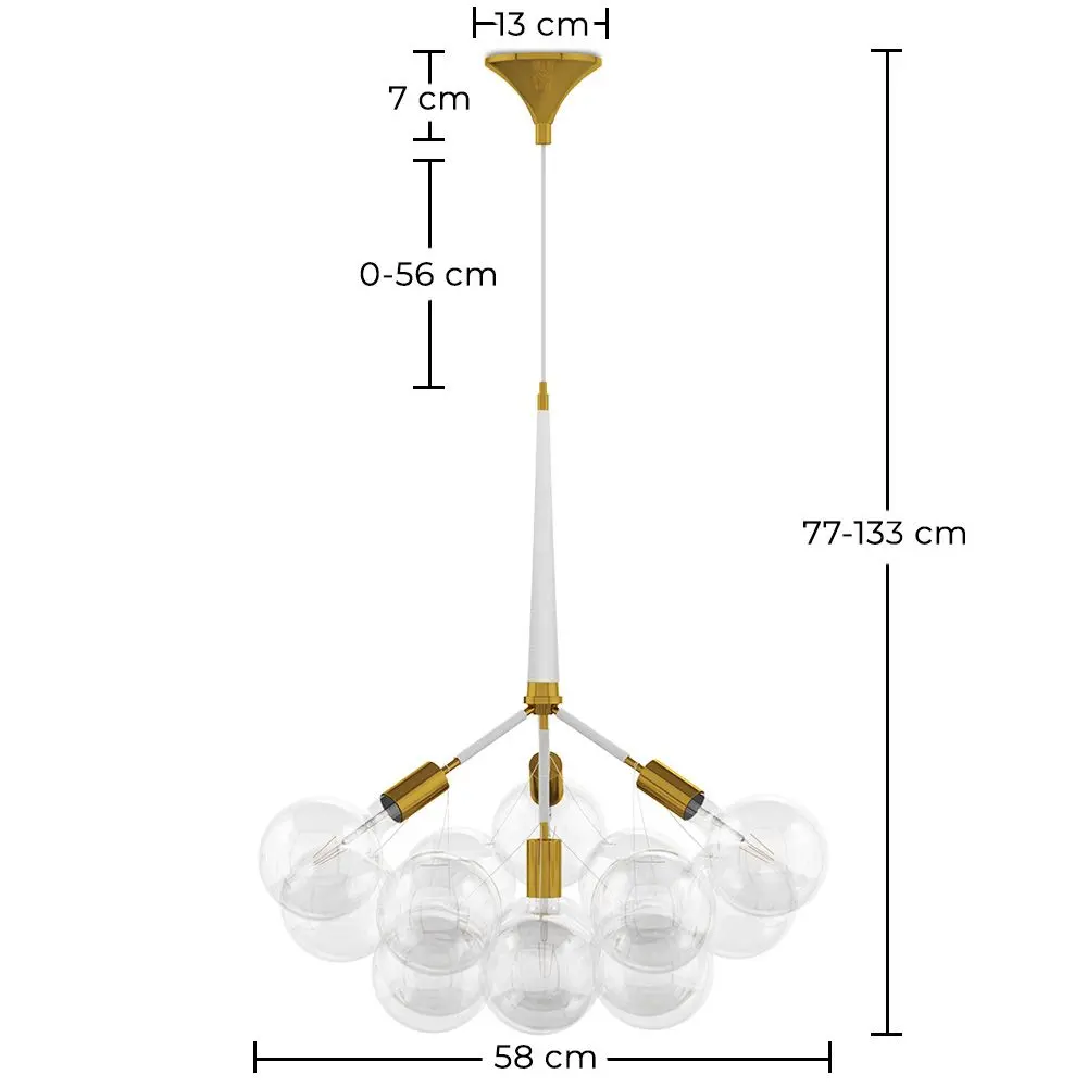We love this globe chandelier with twelve glass globes and four bulbs. It is ready to take the central stage in a room. Bring decor and light above the dining table, in a living room.