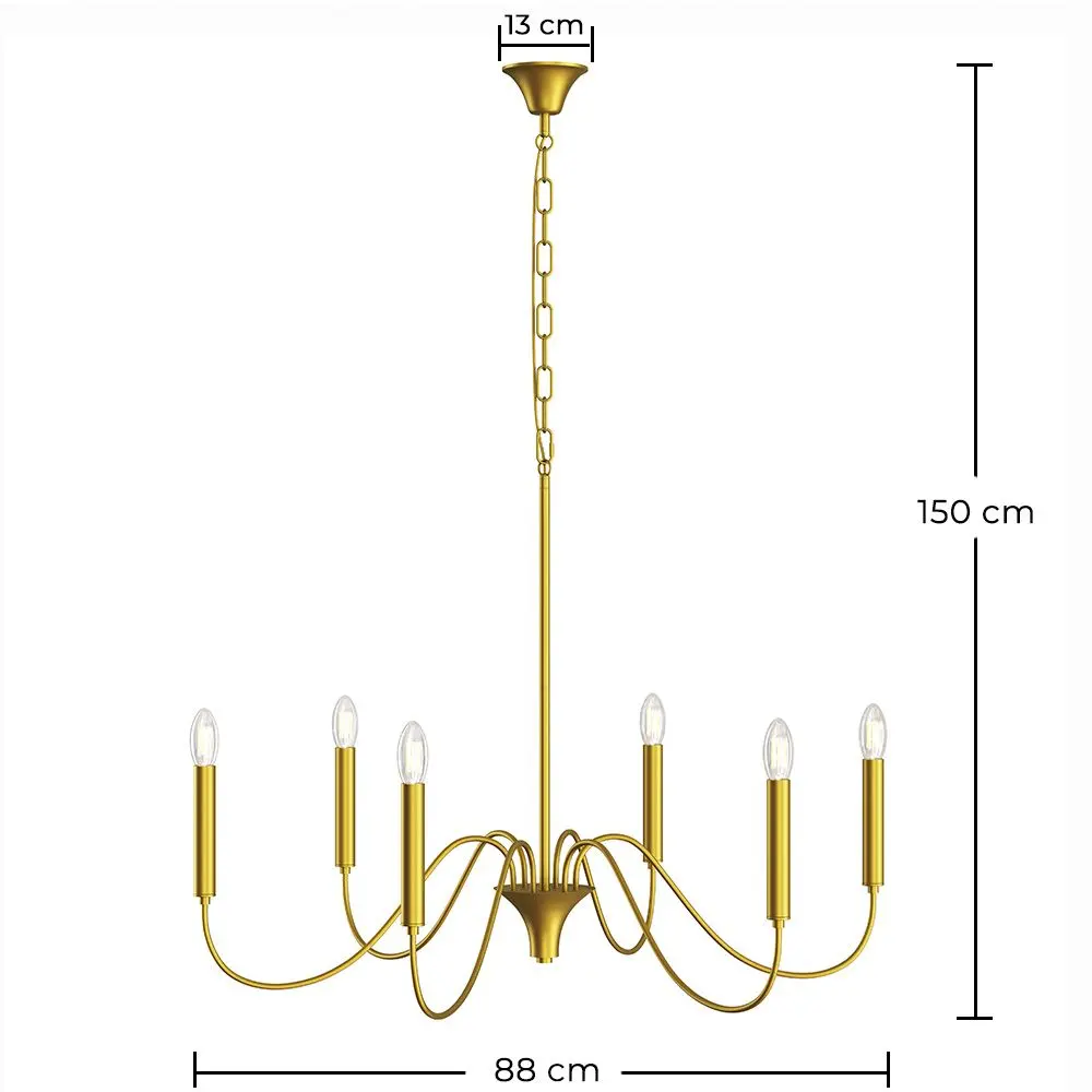 Elevate your home decor with this elegant satin gold pendant lamp, designed to stand out in dining rooms, living areas, foyers, or spaces with high ceilings. Inspired by classic chandeliers, this 6-arm curved fixture blends traditional charm with a sophisticated, contemporary aesthetic.