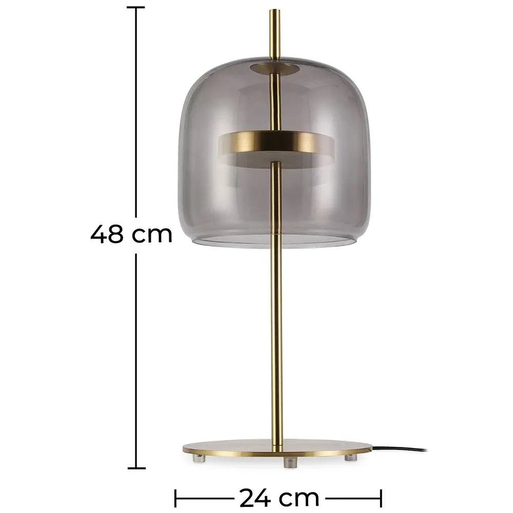 Anybody looking for designer light fixtures with a preference for unique, modern styling need to look no further. This gorgeous table lamp has an exciting glass shade with a smoky appearance. This allows for a soft ambiance yet allows the light to shine through for illumination. The gold-colored stand is sleek and elegant, with the shade perfectly positioned to provide a useful light source. The dome-shaped shade immediately catches the eye drawing attention to the soft glow. With a diameter of 24cm and a practical height of 48cm, this good size makes it the perfect table lamp for any room.