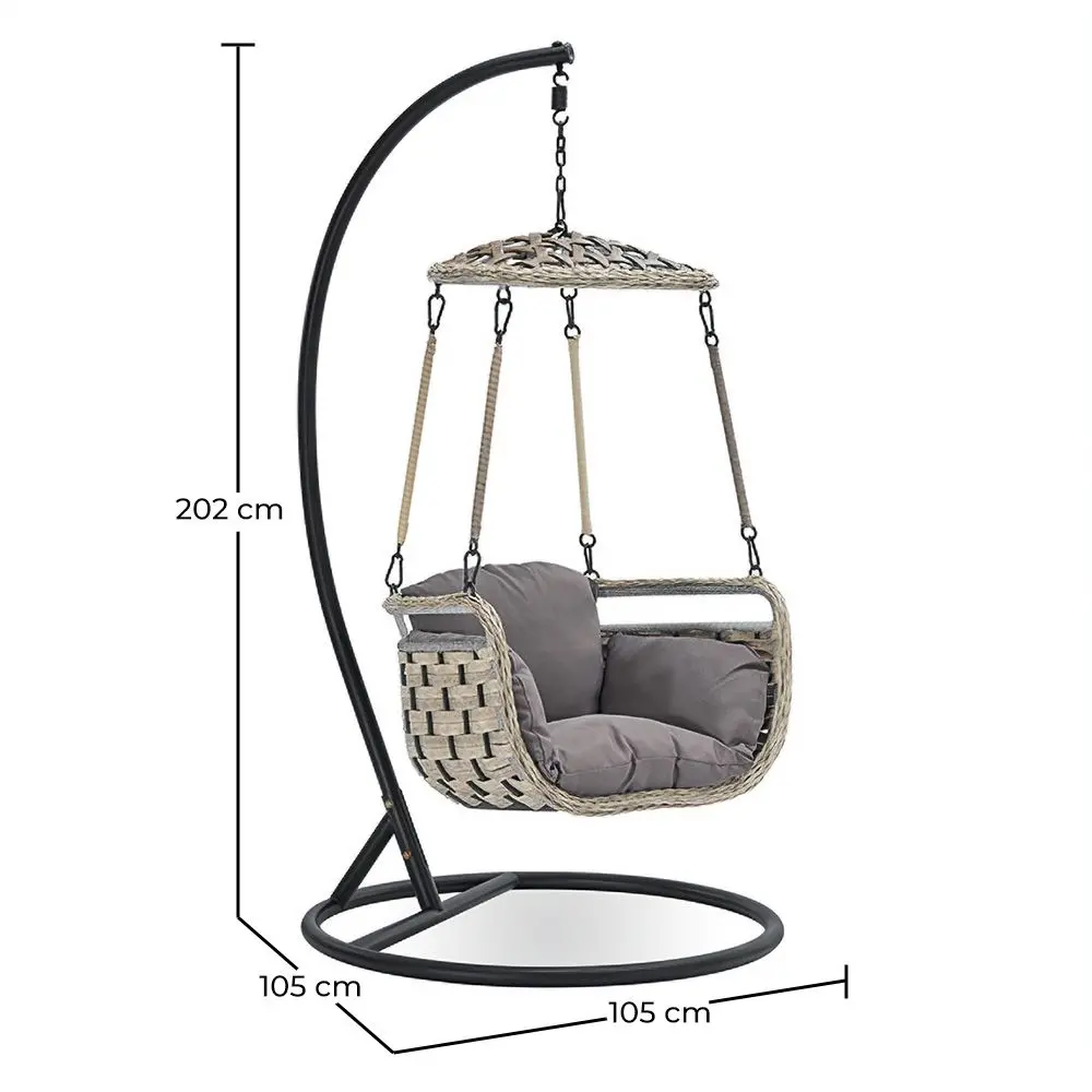 Besides the characteristic swinging, the chairs differ in the materials they're made of. To hold its shape, this chair is made of a solid steel frame, so the structure can support your weight. Also, the rain can't cause any damage because it has waterproof cushions.