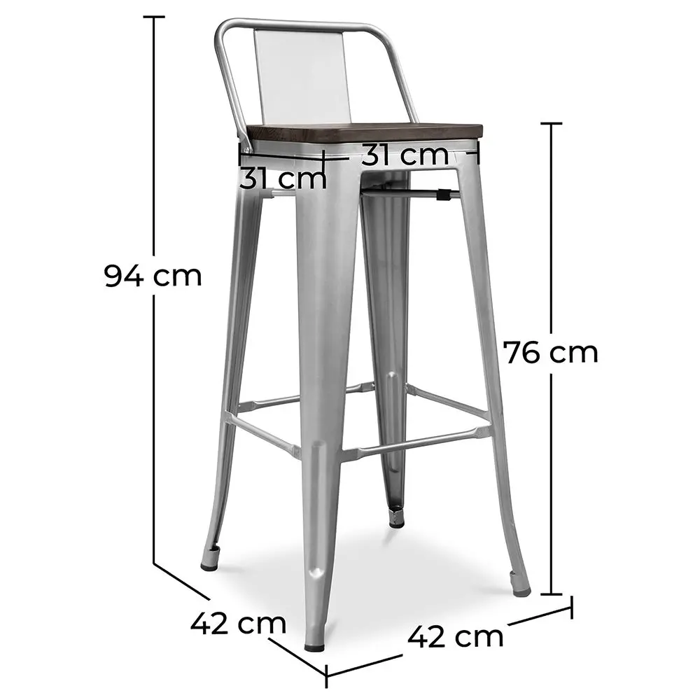 Its sturdy steel frame ensures durability and stability, while the dark wooden seat and backrest add a warm and elegant feel that enhances any setting. This stool is the perfect choice for those who value robust, functional furniture with character for intensive indoor use.