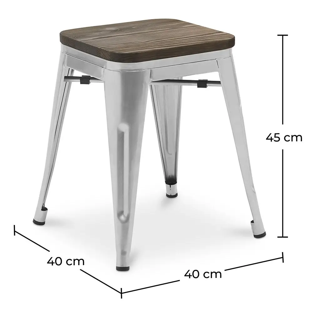 Perfect for small and functional spaces, the Metalix 45 cm stool with a dark wood seat combines a sturdy industrial design with the natural warmth of wood. Its steel frame ensures strength and durability, while the dark wood seat adds an elegant and sophisticated touch.