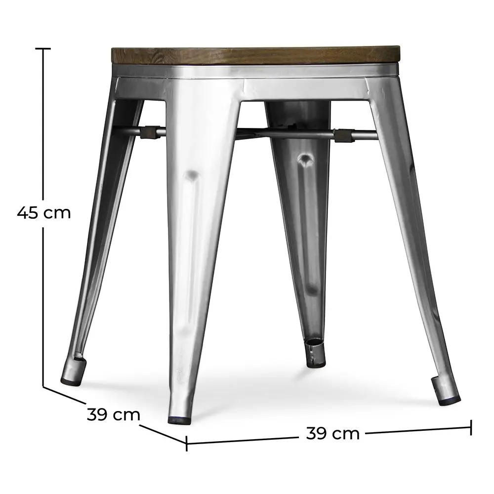Its sturdy metal frame ensures stability and durability, while the wooden seat adds comfort and authentic style that fits modern and urban settings. Ideal for intensive indoor use, this stool is versatile and elegant.