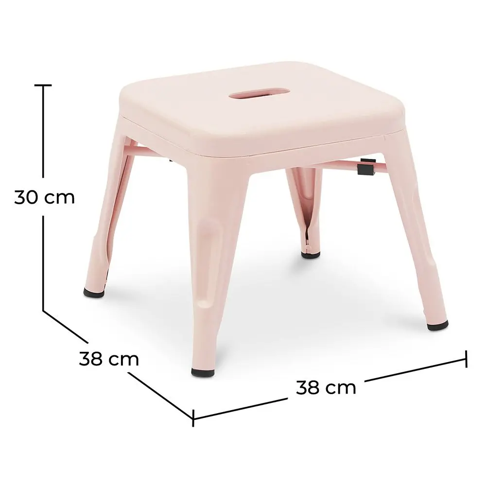 Children will love this metal stool. Bright color is easy to spot and will bring joy to your interior or exterior. It has a notch in the middle of the seat that facilitates mobility.
