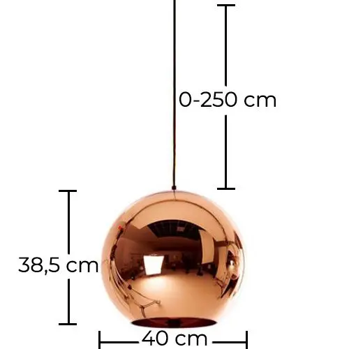 This 40 cm pendant lamp is made by electroplating chromed glass and its bezel is made of carbon steel. You can adjust the 250cm cable of your Cooperlight lamp so that it works for both spaces with high ceilings to rooms with normal ceiling height.
