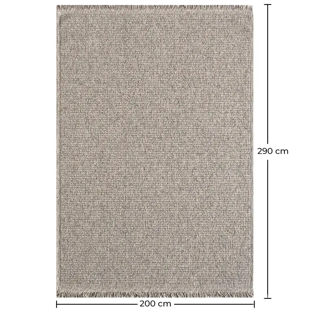 This minimalist-style rug in neutral colors is the perfect addition to create a serene and modern atmosphere in your home. With generous dimensions of 200 by 290 centimeters, this rug provides a comfortable and elegant base for your living room, bedroom, or dining room. Its simple and elegant design, combined with neutral tones, gives it a timeless look that adapts to any decorating style. Made with high-quality materials, this rug is resistant and durable, ideal for withstanding the passage of time in high-traffic areas. Add a touch of warmth and style to your home with this beautiful minimalist rug.