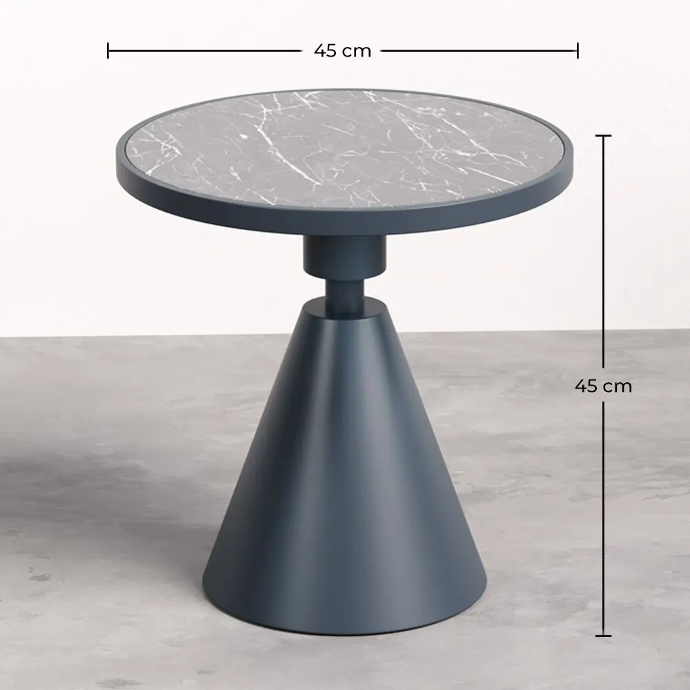 Add a touch of elegance to your outdoor space with this round side table featuring a metal frame and a slate base. Designed to withstand weather conditions, this table is ideal for patios, gardens, and terraces. The combination of sturdy metal with the natural texture of slate provides a modern and sophisticated aesthetic, while its robust construction ensures durability. Whether used as a stand for plants, drinks, or as a decorative piece, this side table is the perfect choice for any outdoor setting.