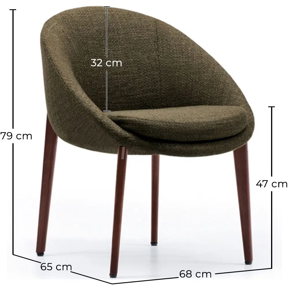 Modern upholstered chair for dining rooms in elegant restaurants and hotels. With a refined design and high-quality materials, this upholstered chair offers comfort and style for luxury dining rooms. Its ergonomic seat and wrap-around backrest are designed to provide comfort during long meals, while its wooden legs add a warm and sophisticated touch. Ideal for interior design projects in restaurants and hotels that require exclusive and functional furniture.