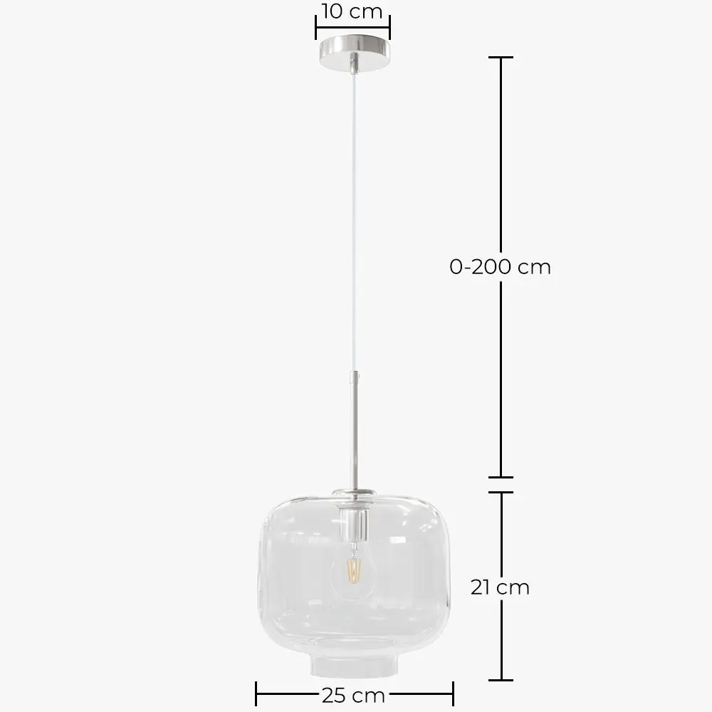 Bring style and brightness to any space with this elegant glass and metal pendant lamp. Its minimalist design with a transparent shade highlights the bulb and creates a warm and welcoming atmosphere, ideal for living rooms, dining areas, kitchens, or even commercial spaces. Made with high-quality materials, it combines the strength of metal with the lightness and purity of glass, ensuring durability and a sophisticated finish.