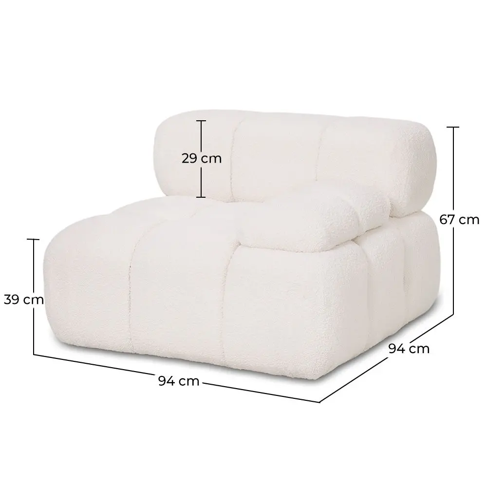 Give your living room a contemporary and cozy feel with this modular corner sofa upholstered in white bouclé fabric. Its versatile design allows you to combine it with other modules to create different configurations, adapting to large or small spaces according to your needs.