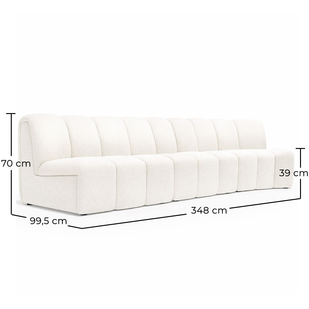 Create an atmosphere of contemporary elegance in your hotel with our curved design modular sofa. Upholstered in premium white bouclé and featuring a solid structure of hardwood, this sofa offers a perfect balance between luxury and minimalism. Its clean lines and gentle curves make it the focal point of any modern space, while its modular versatility allows it to adapt to different configurations. Ideal for reception areas, waiting rooms, or luxury suites, this sofa is a statement piece that will impress even your most discerning guests.