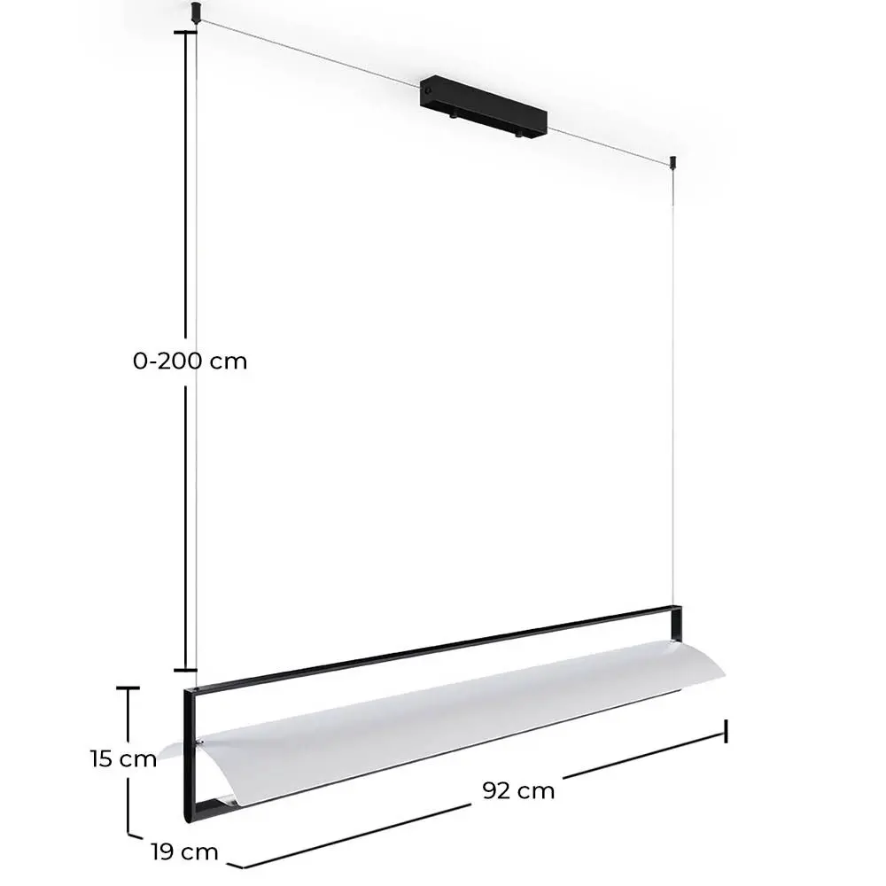 Experience modernity and versatility with this uniquely designed pendant lamp. The white metal LED shade, framed by a black structure, provides a visual contrast that captures attention. With a color temperature of 3000 K, this ceiling lamp offers soft and inviting illumination. The adjustable height cable not only adds functionality but also allows you to customize the lamp's position to suit your needs and preferences. Add a contemporary touch to your space with this pendant lamp that blends modern style and luminous efficiency.