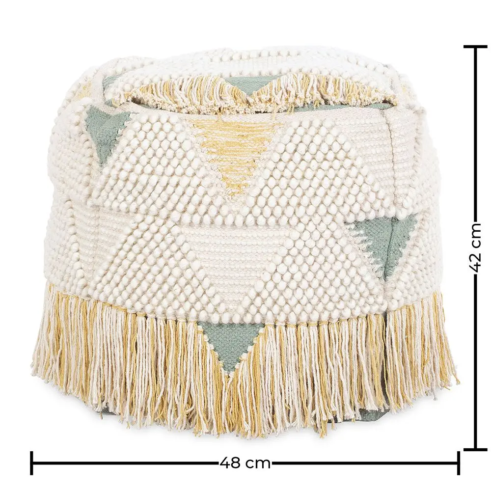 Janet is an ideal addition to any living space. This pouffe is cosy, comfortable, easy to move around, and on-trend. It comes in a cube shape, has thermocol beans as a filling, and cotton and wool fabric. The pattern in boho style is playful and calming. Perfect next to your sofa as an additional seat or a footrest.