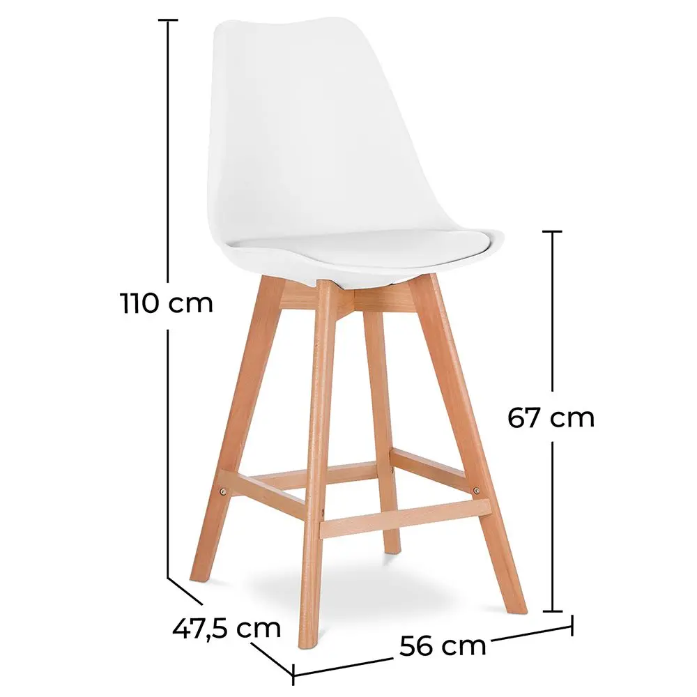 This Scandinavian-style bar stool with a fixed cushion is made of PP. The legs in solid wood are very resistant and stable.