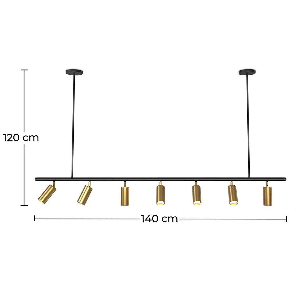 This rail ceiling light with 7 adjustable gold spotlights is a real gem. It is perfect for lighting lounges, restaurants and cafeterias with style. With it's 140 centimeters long, this design lamp is very functional and will allow you to illuminate any space with a practical but cozy light. Our modern industrial style Lark pendant light will be a key piece of your design decor.