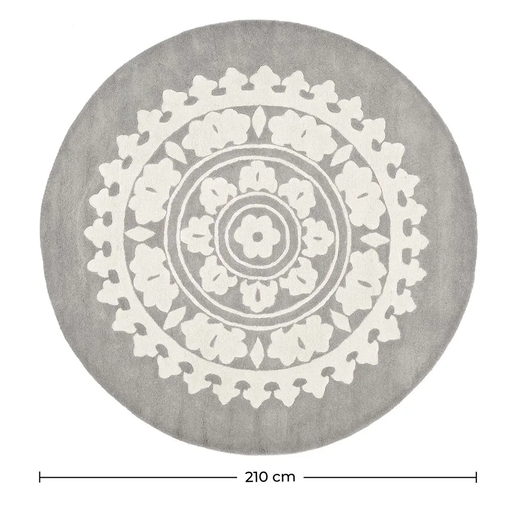Elegant, sophisticated and simple, these are the qualities that define this round carpet. It is handmade by expert craftsmen using high quality wool. Its romantic design will give refinement to any space; this is a carpet of 210 cm in diameter, so it has the perfect size for small or large rooms.