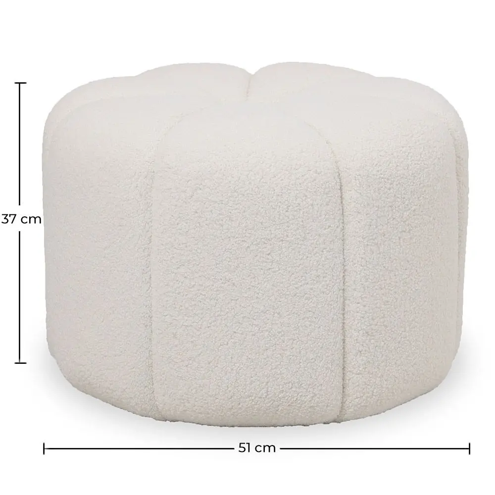 Experience comfort and style with our ottoman upholstered in bouclé fabric, featuring a curved and minimalist design. Crafted with superior quality sheep's wool fabric, this ottoman adds a touch of elegance and sophistication to your space. Its minimalist design makes it perfect for any environment, whether in your living room, bedroom, or office. In addition to being a decorative element, its quality structure ensures durability and comfort. Discover luxury and comfort with this ottoman that will transform your space into a cozy and elegant place.