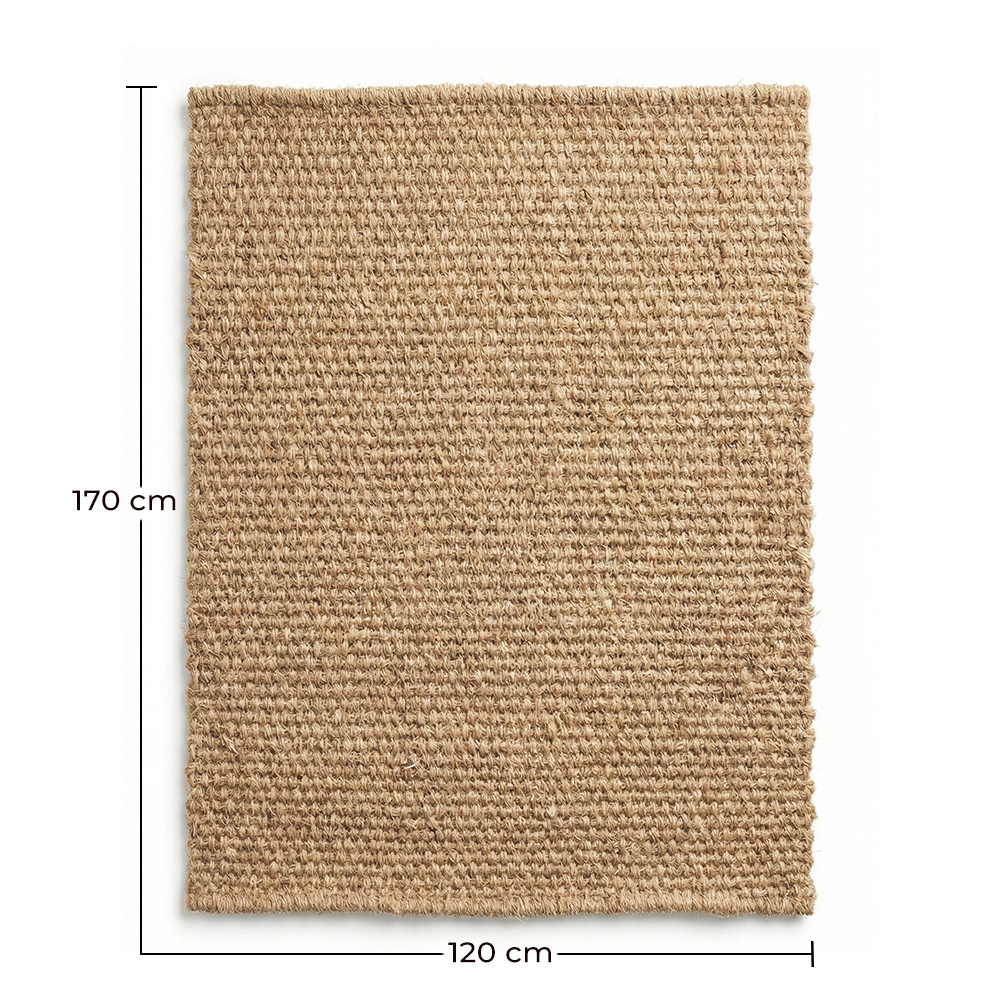 Thanks to its 170 x 120 cm size, it’s ideal as a living room rug, covered terrace rug, porch rug, entryway rug, or even as a decorative dining room rug. Its natural tone finish blends easily with Nordic, rustic, Mediterranean, or boho styles.