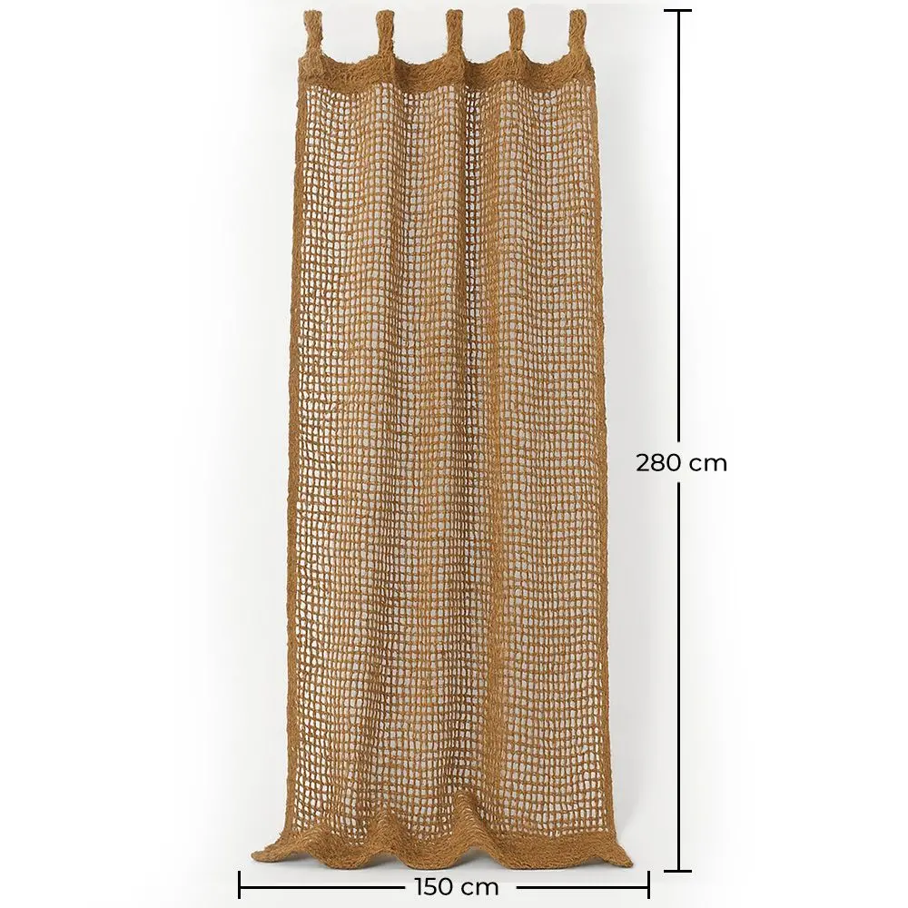 Bring a fresh and exotic touch to your terrace, porch, or garden with this natural coconut fiber outdoor shade sail/curtain. With a rustic, handcrafted design and an openwork texture that allows the breeze to pass through, this curtain is perfect for creating cozy, shady environments without losing light. Made with 100% natural coconut fiber, a sustainable, strong, and durable material, ideal for outdoor use. Measuring 280 cm high by 150 cm wide, it offers excellent coverage, whether used as a pergola curtain, decorative awning, or room divider. It includes integrated rings of the same material for easy installation on poles or ropes. Ideal for stylish sun protection and a boho or Mediterranean feel to any outdoor space.