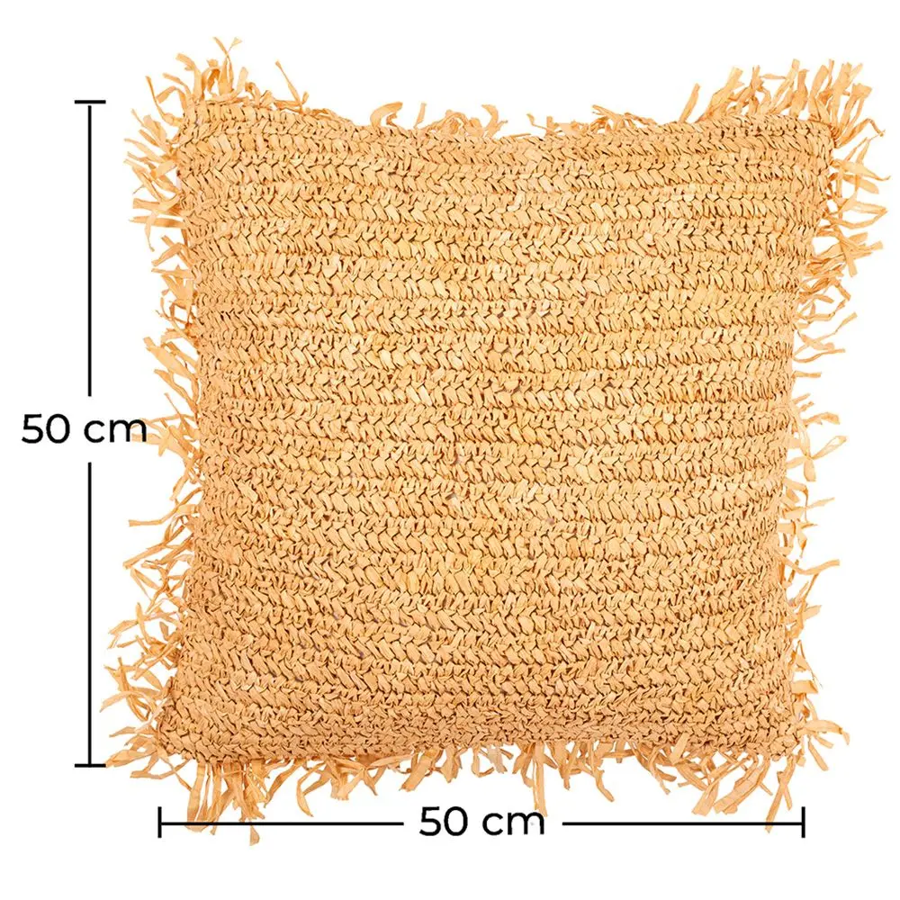 Bring a touch of nature and bohemian style to your sofa, armchair, bed or couch with this raffia cushion Alizon cover. This decorative piece comes with a cushion. Squared shaped, they can easily find their place and decorate both indoors and outdoors. What an addition to your living spaces! Filling included.