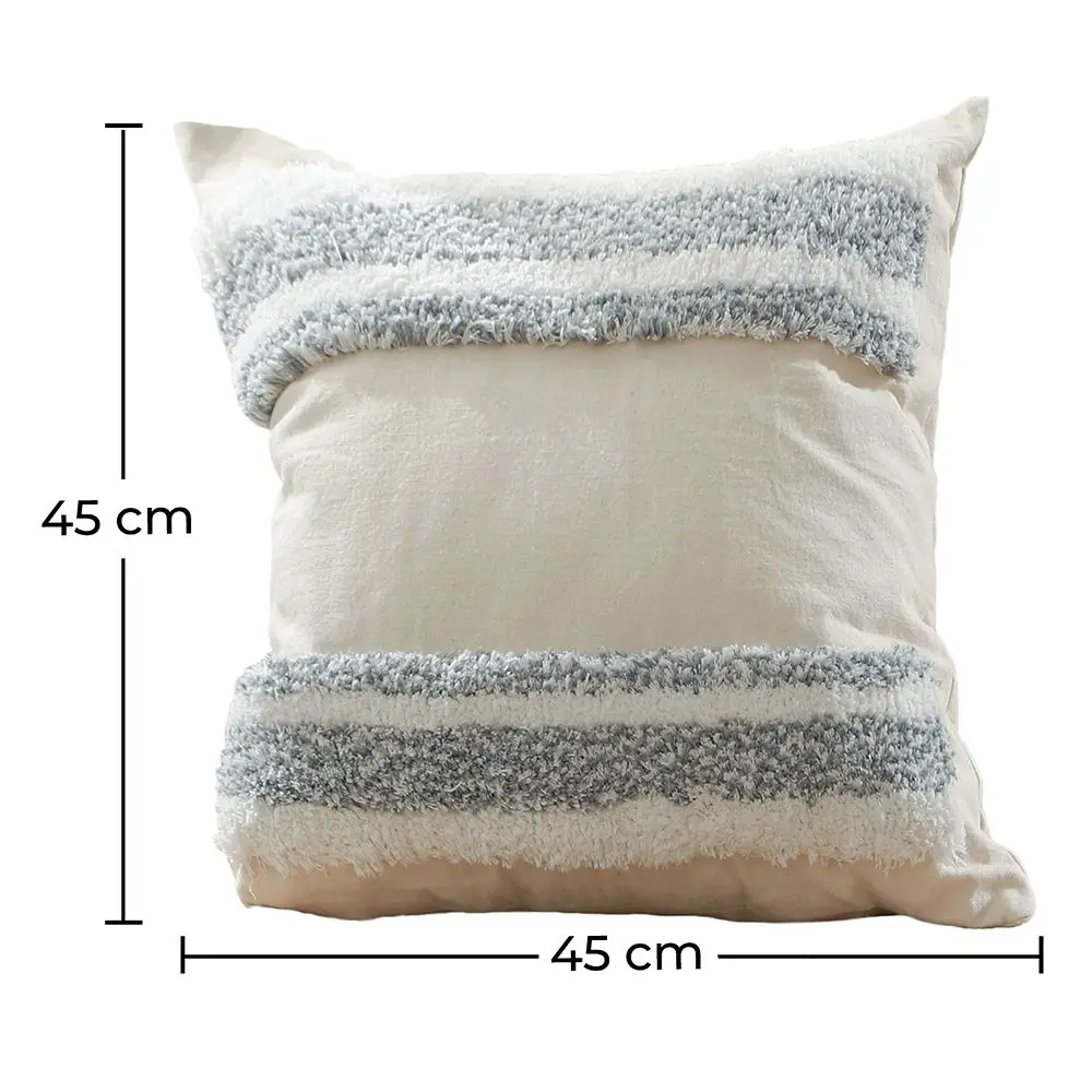 Bring a cosy feel to your living space with Kamala, square shape cushion cover. One side has tufted material that, together with its use of patterns, adds to a soothing feel. Perfect choice to discretely decorate your bed, sofa, or armchair, in your living space. Filling included.