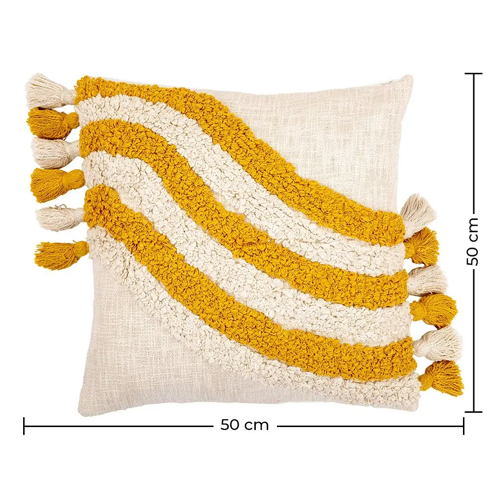 Meet Edwinna . A super-soft and comfortable pillow with a cosy texture, a fringe and poly fibre filling. This cotton cushion will turn your couch, sofa or armchair into a sanctuary. Filling included.