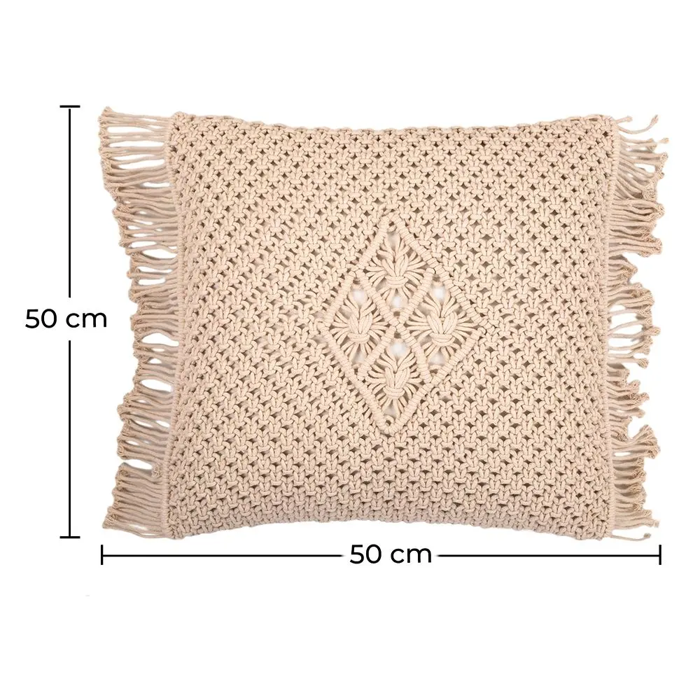 Meet Mecanda. A super-soft and comfortable pillow with a cosy texture, a fringe and poly fibre filling. This cotton cushion will turn your couch, sofa or armchair into a sanctuary. Filling included.